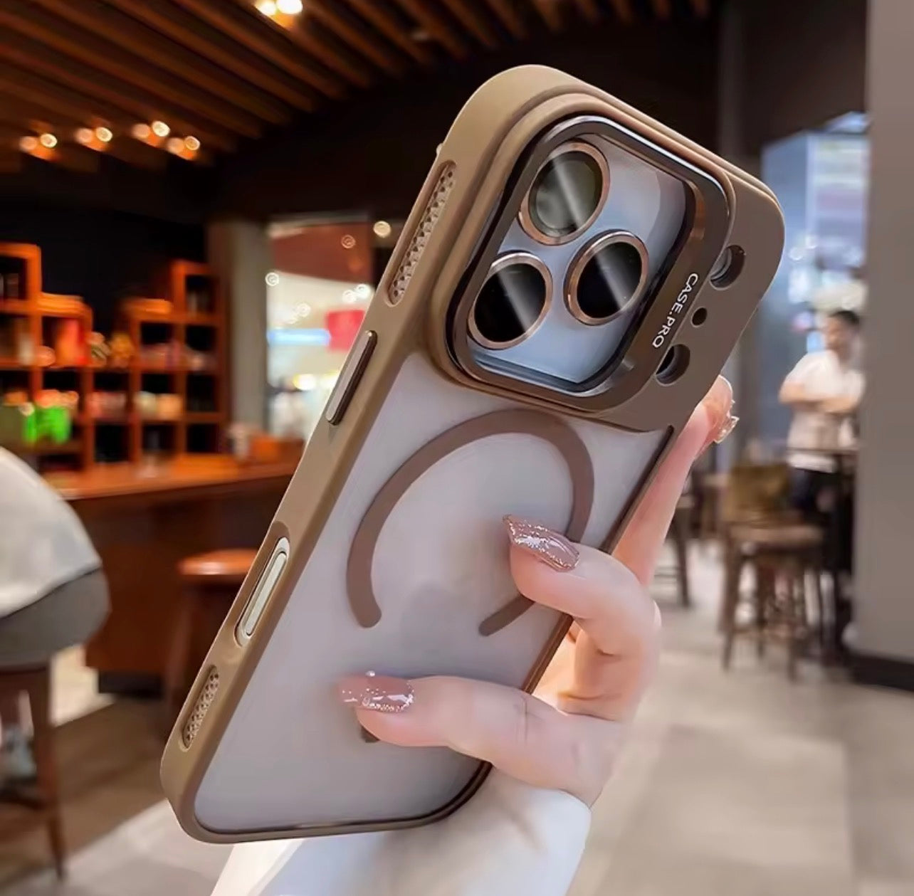 Protégez votre iPhone avec élégance grâce à cette coque de luxe compatible MagSafe. Conçue pour les modèles iPhone 17 Pro Max elle intègre un anneau magnétique qui permet de la fixer facilement aux chargeurs MagSafe et aux accessoires compatibles.